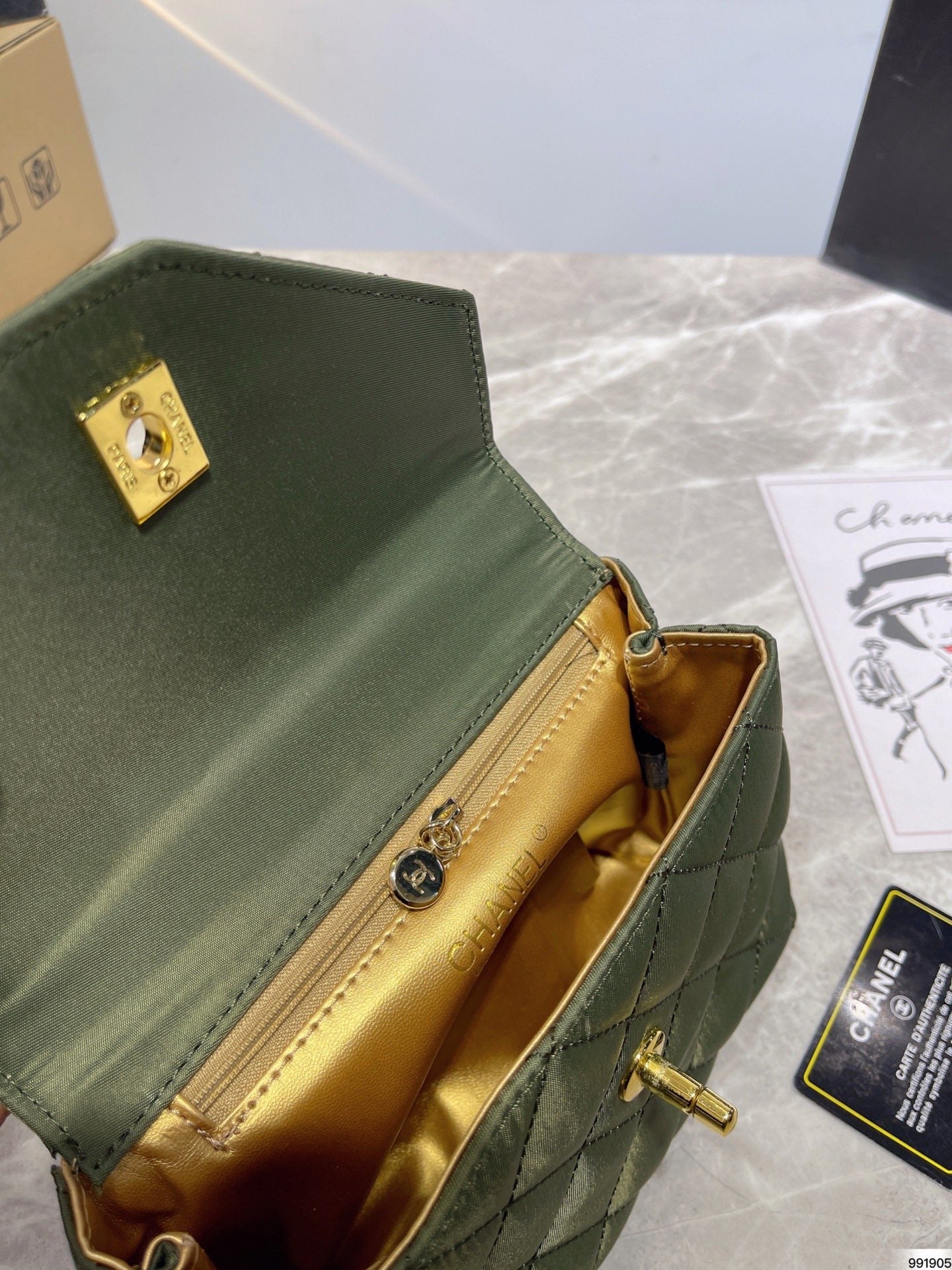 Includes Shipping bags, dustbag sleeper, care manual, booklet, tag.