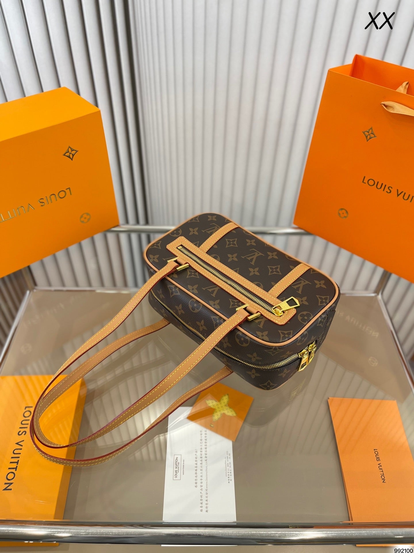 Includes Shipping bags, dustbag sleeper, care manual, booklet, tag.