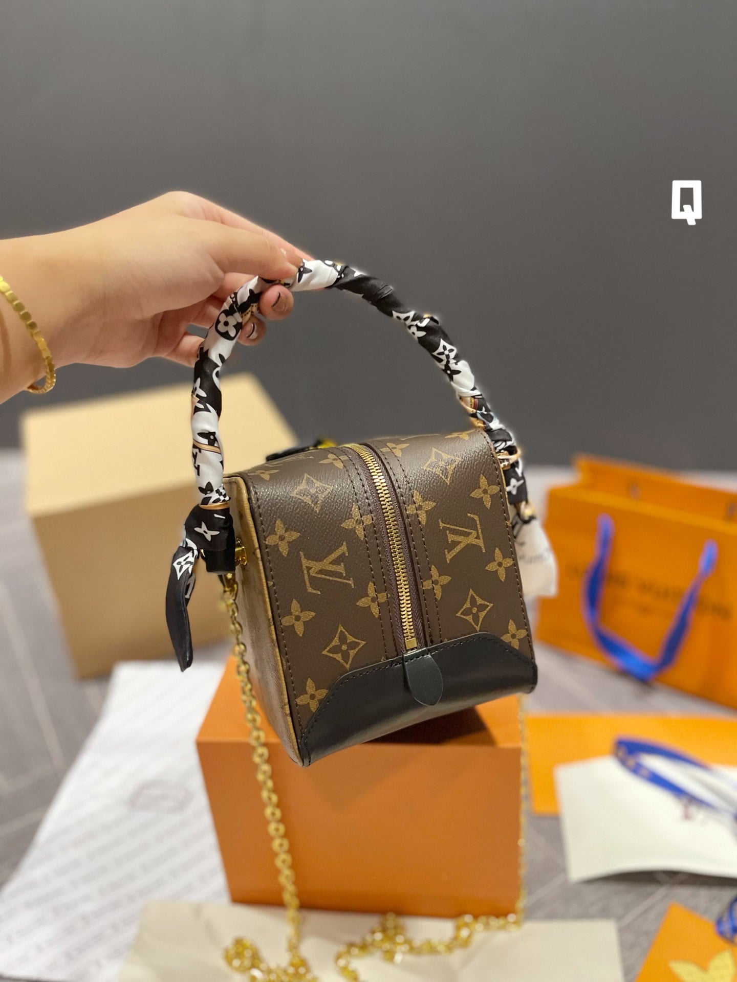 Includes Shipping bags, dustbag sleeper, care manual, booklet, tag.
