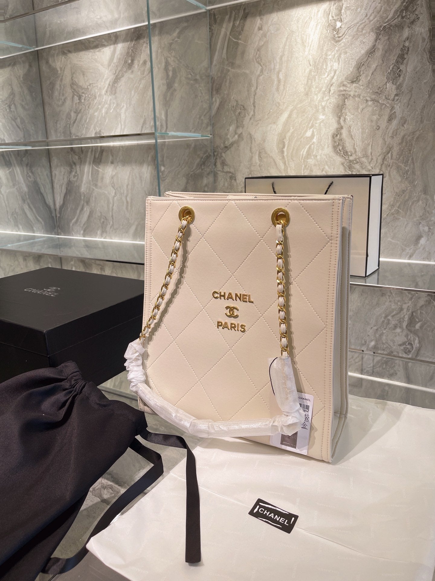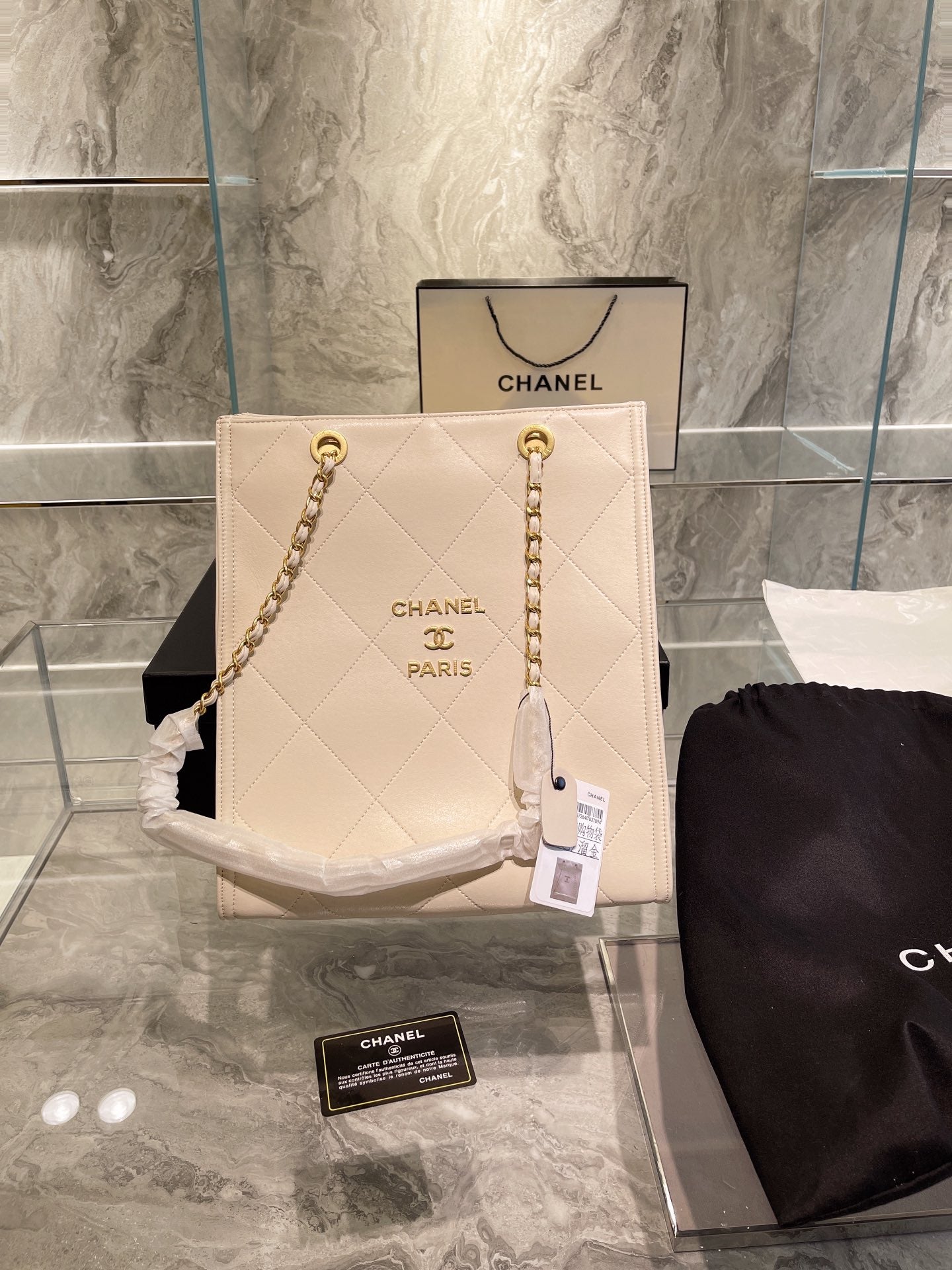 Includes Shipping bags, dustbag sleeper, care manual, booklet, tag.