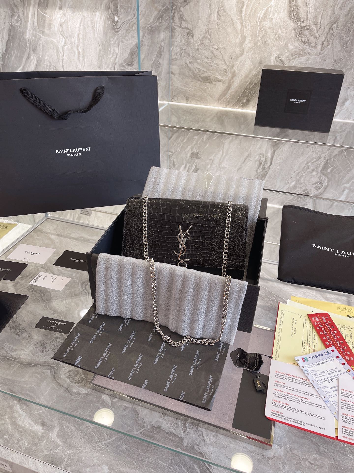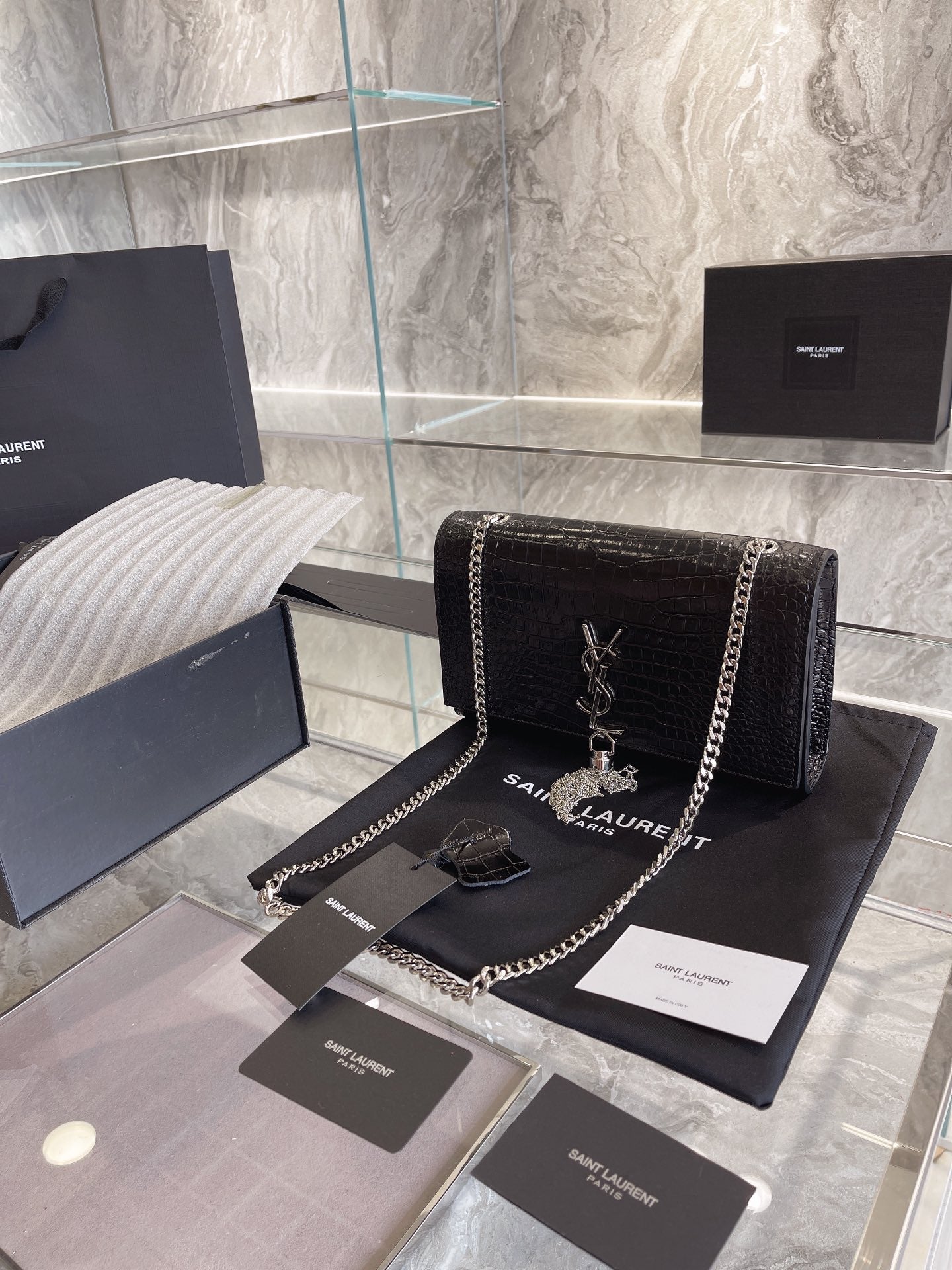 Includes Shipping bags, dustbag sleeper, care manual, booklet, tag.